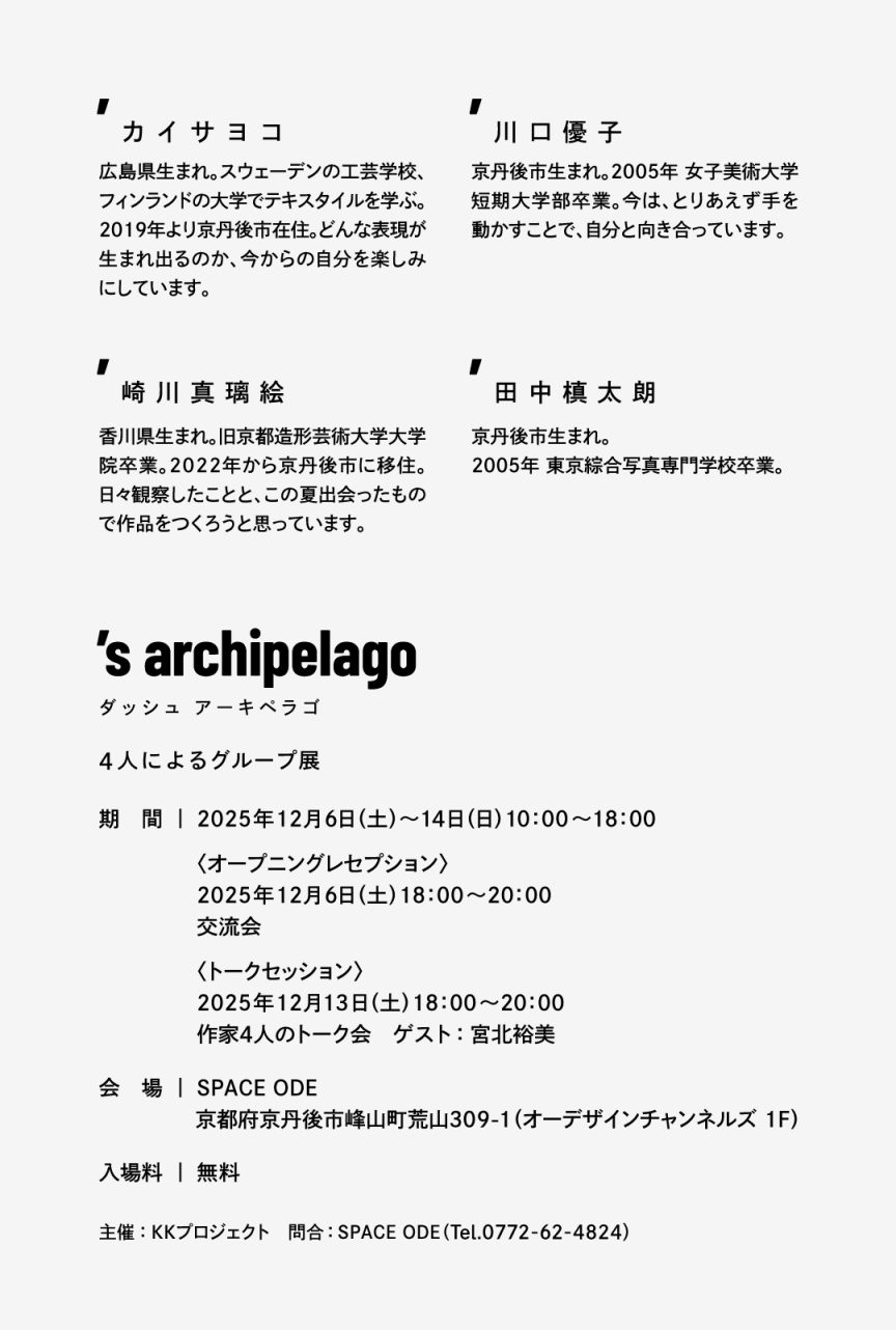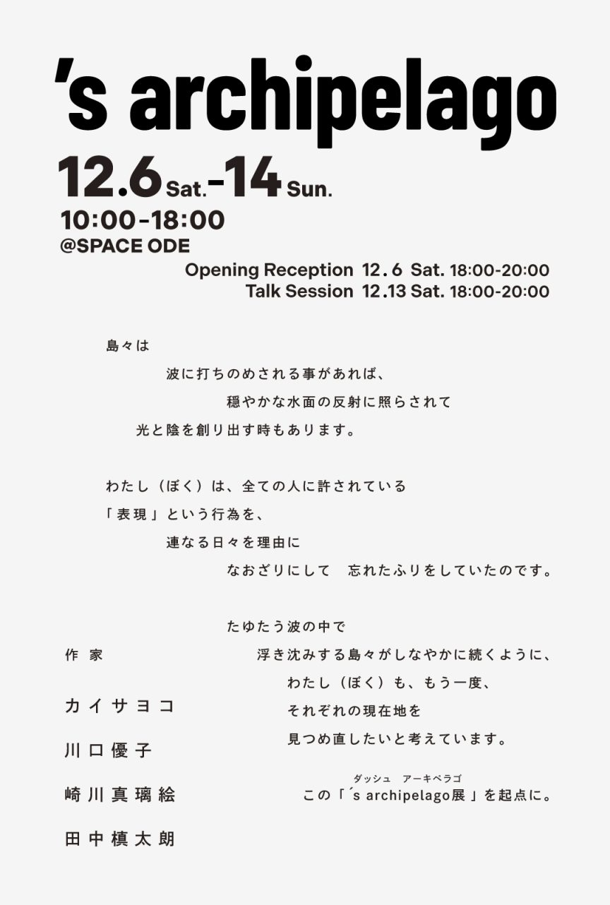 グループ展『´s archipelago(ダッシュ アーキペラゴ)』開催