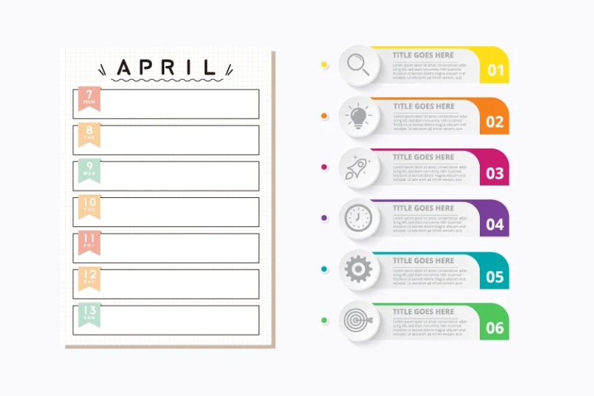 情報を項目ごとに並べる「リスト形式」も効果的です。イラストと組み合わせるとより良いでしょう。